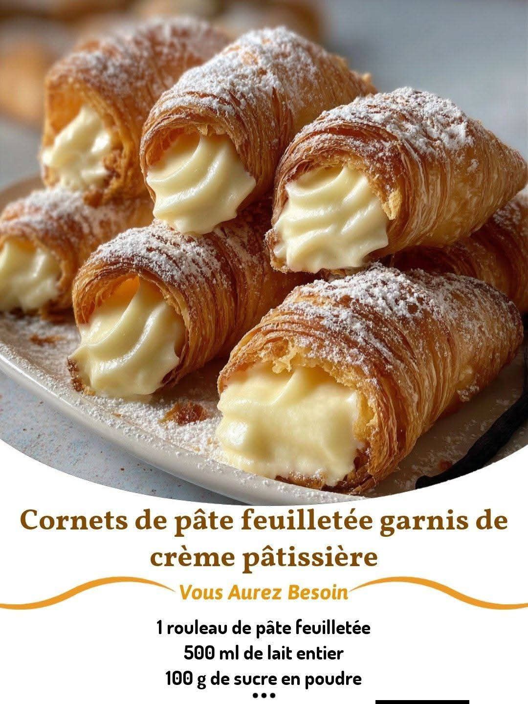 Les cornets feuilletés à la crème pâtissière sont un dessert classique de la pâtisserie française, à la fois croustillant, gourmand et facile à préparer. Garnis d’une crème pâtissière maison à la vanille, ces petits délices séduisent à coup sûr lors d’un goûter, d’un anniversaire ou d’un dessert raffiné.