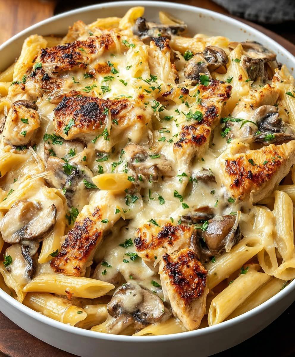 Ce gratin de penne crémeux au poulet et aux champignons est le plat réconfortant par excellence pour les soirs de semaine chargés ou les dîners conviviaux en famille. Composé de poulet tendre, de penne al dente, de champignons frais et d'une sauce onctueuse et riche , ce plat de pâtes gratiné est facile à préparer et recouvert de fromage fondu pour une finition dorée et irrésistible.