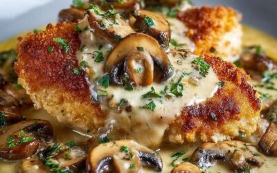 Poulet Croustillant au Parmesan et Champignons Un poulet croustillant et ultra crémeux qui va faire sensation Ce poulet croustillant au parmesan…