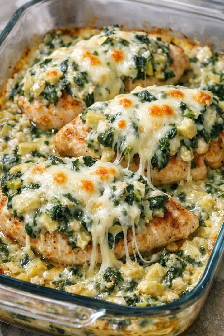 Poulet aux épinards et aux artichauts facile à préparer avec seulement 3 ingrédients
