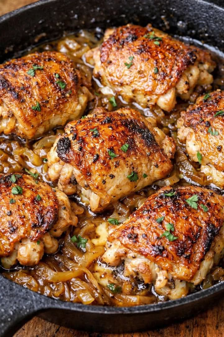 Cette recette de cuisses de poulet au four est un classique indémodable, rendu célèbre par la saveur prononcée de la soupe à l'oignon en poudre. C'est une de ces recettes de poulet infaillibles que vous aurez envie de refaire sans cesse.