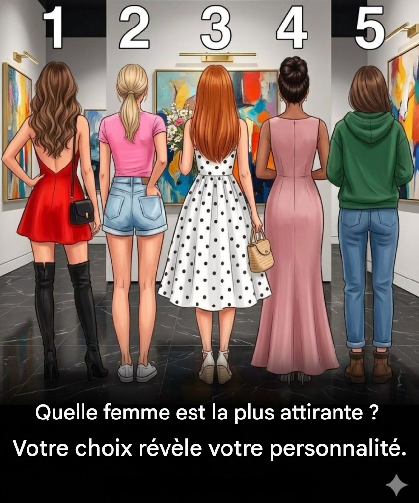 Si la troisième femme, en robe à pois, vous séduit, c'est sans doute parce que vous appréciez l'équilibre, l'élégance et le charme classique. Son style, à la fois féminin et raffiné, la distingue avec subtilité.