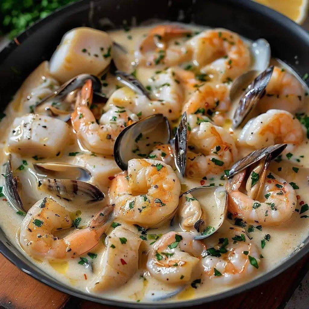 Cette recette de fruits de mer crémeux à l'ail est le summum des plats de fruits de mer dignes d'un restaurant, à déguster chez soi . Composée de crevettes, de pétoncles, de poisson blanc et de moules , le tout enrobé d'une onctueuse sauce crémeuse à l'ail et au parmesan , elle est idéale pour :