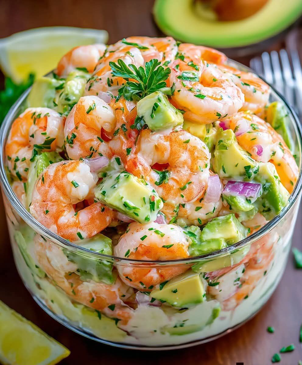 La salade de crevettes et avocat crémeuse est une recette légère, savoureuse et rapide à préparer. Cette salade healthy aux crevettes et avocat combine la douceur des avocats mûrs, la tendreté des crevettes et une sauce onctueuse au yaourt citronné pour créer un plat équilibré et rafraîchissant.