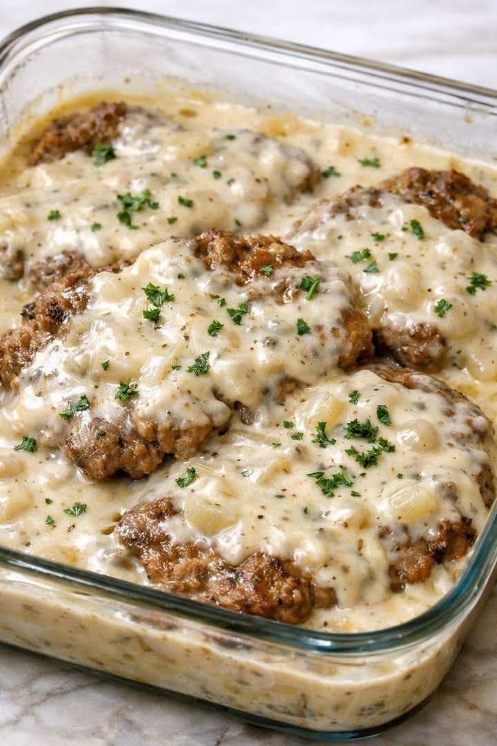 Cette recette de steak haché cuit au four utilise des ingrédients simples que l'on trouve dans tous les placards et offre une texture de bœuf fondante avec une sauce crémeuse aux champignons que tout le monde adorera.